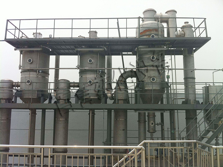 5、設(shè)備由一、二、三、多加熱器,一、二、三、多蒸發(fā)分離結(jié)晶室、循環(huán)管、汽液分離器、混合式冷凝器、真空泵、濃漿出料泵,一、二、三、多效強(qiáng)制循環(huán)泵、冷凝水泵、電控箱、工作臺(tái)及管路、閥門、儀表等組成。